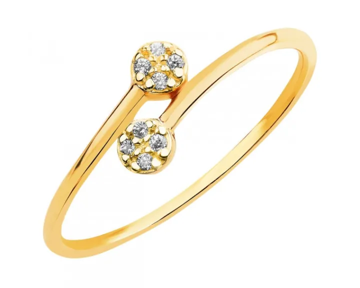Pierścionek wykonano z żółtego złota próby 585 i ozdobiono cyrkoniami.