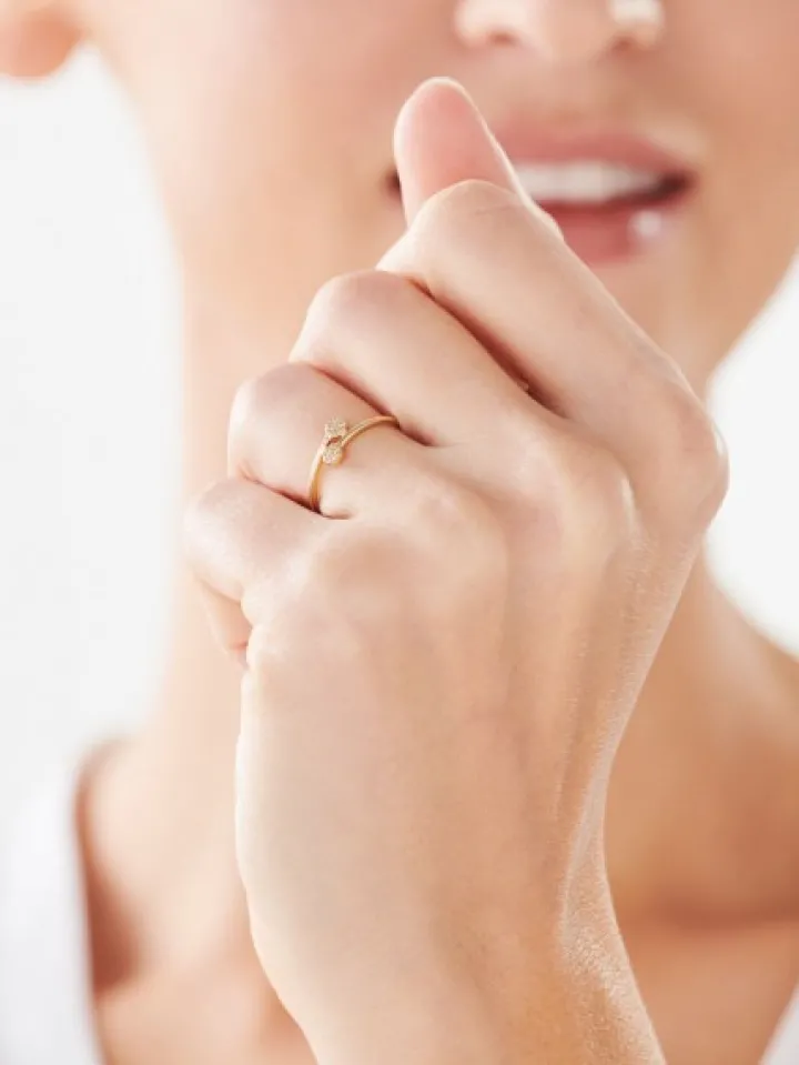 Delikatny złoty pierścionek o delikatnie spiralnej, otwartej formie zwieńczonej rozświetlonymi cyrkoniami detalami. Wzór z żółtego złota to propozycja stworzona z myślą o kobietach, które poszukują pierścionków w mniej klasycznym stylu, zaskakujących nietuzinkowym podejściem do formy.